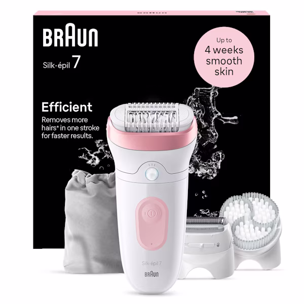 Bir epilatörden çok daha fazlası: Eksfoliasyon fırçası, bayan tıraş makinesi ve hassas bölgeler için düzeltici tarak dahildir.