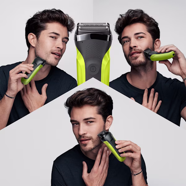 Dayanıklı kablosuz tıraş makinesi ve sakal şekillendirme makinesi. Braun tarafından Almanya'da tasarlanmış ve geliştirilmiştir.